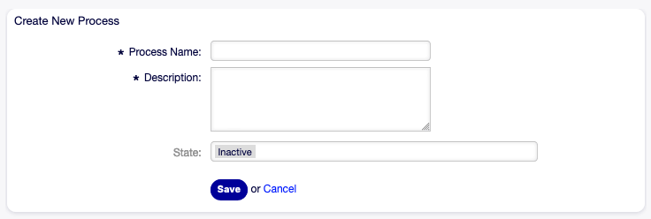 Create New Process Screen