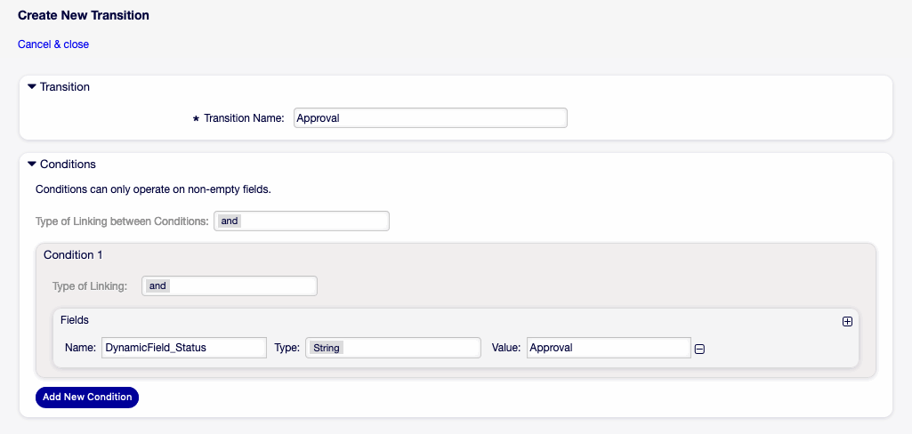 If the condition of this activity is fulfilled, the ticket will move to activity Approval.