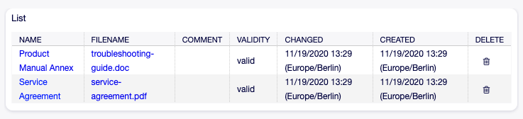 Use this screen to add attachments for use in templates. A fresh OTOBO installation doesn’t contain any attachments by default. The attachment management screen is available in the Attachments module of the Ticket Settings group.