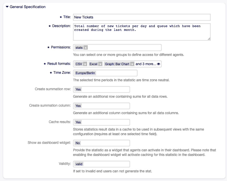 Es gibt drei verfügbare Statistktypen in OTOBO.