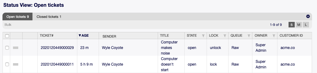 - Klicken Sie auf den Kopf einer Spalte, um die Tickets nach dem gewählten Attribut zu sortieren.
