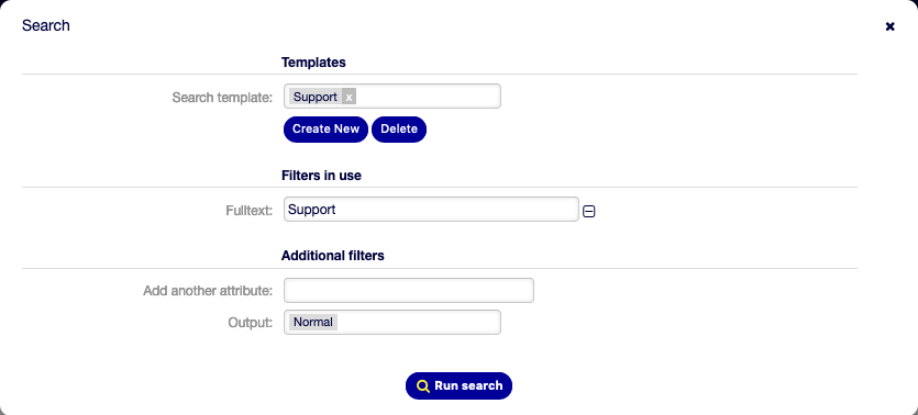 Use this screen to search for FAQ articles based on various criteria. The FAQ search screen is available in the Search menu item of the FAQ menu.