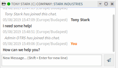 - If you want to contribute something to the chat you have been invited to, you can join it as a participant. Customer users, public users and agents will receive a message that you have entered the chat. As a participant, you can become an observer anytime by using the advanced action toolbar in your chat widget.